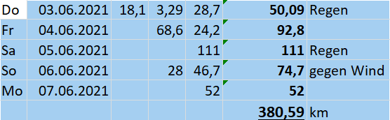 Die neuen Packtaschen mussten getestet werden. So startete ich von meinem Wohnort am 03.06.2021.