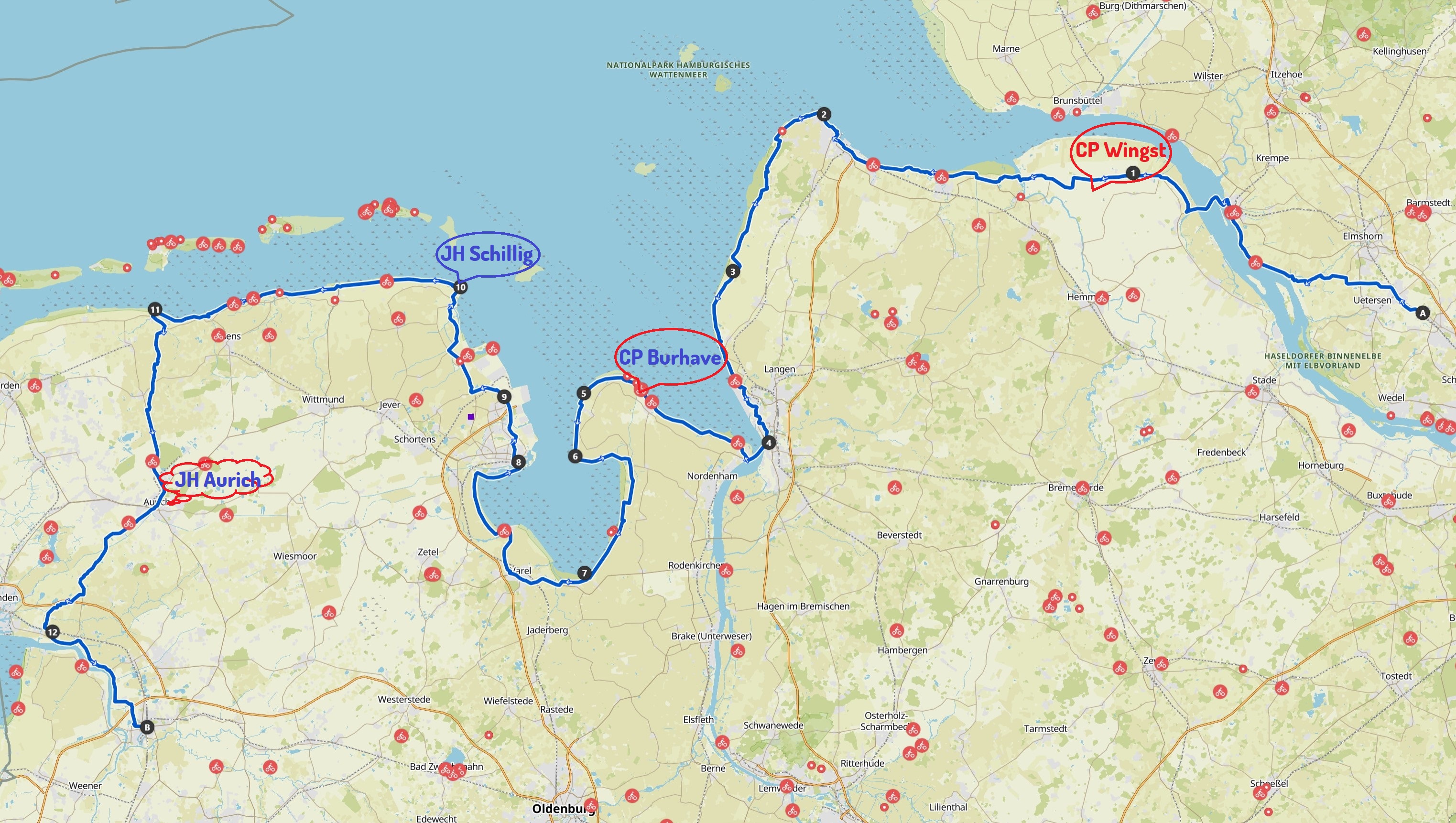 Glückstadt - Wischhafen - Wingst - Cuxhaven - Bremerhaven - Burhave - Wilhelmshaven - Schillig - Dorumer Siel - Aurich - Leer