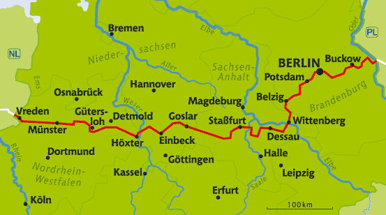 | 2. | http://www.bahnradrouten.de/ 160km von Osnabrück nach Paderborn | http://www.bahnradrouten.de/t_s_main01.htm | Teuteburger Wald 350 km von Bremen nach Paderborn | http://www.bahnradrouten.de/w_l_main01.htm | über Bünde 275 km von Hameln nach Soest | http://www.bahnradrouten.de/h_w_main01.htm |