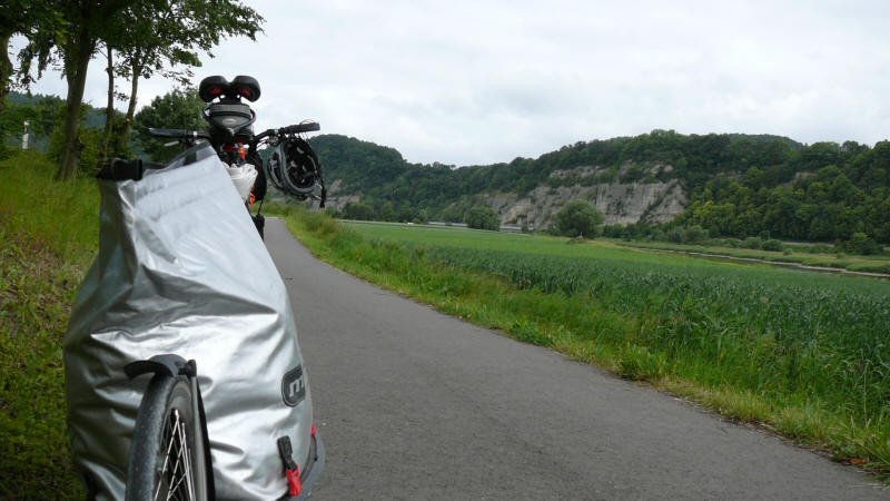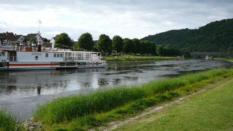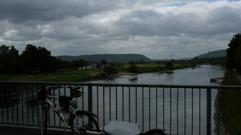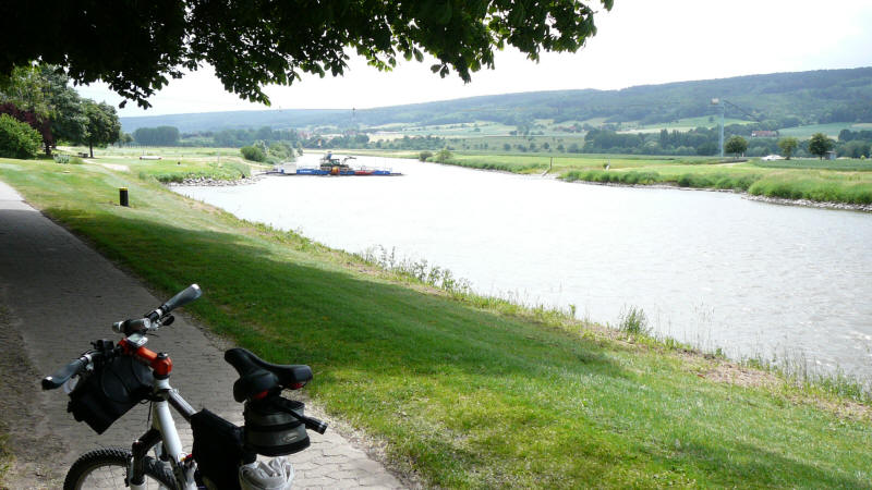 Der Himmel ist am morgen bedeckt. Meine Beine fühlen sich gut an - kein Muskelkater. Matthias und Susanne habe ich ein Stück begleitet. Die Strecke war mir noch gut in Erinnerung. Lange gerade Radwege, teils etwas höher am Ufer entlang, teils direkt am Fluss. In Hameln hatte ich letztes Jahr beim Kanuclub übernachtet. Diesmal wollte ich etwas anderes kennenlernen. En wenig weiterfahren kann auch nicht schade, denn es ist um diese Jahreszeit lange hell. Der erste Campingplatz war mir als nicht so gut beschrieben worden. Kurz darauf folgte ein Anderer. Wieder Duschmarken - keinen anderen Radfahrer - nur Wohnmobile und Wohnwagen weit und breit - kein Kontakt.