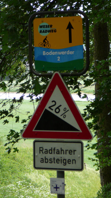 Das Rad lief an diesem Tag fast von alleine. Dank des starken Rückenwindes kam ich weiter, als ich gedacht hatte. Der Weg war diesmal etwas anders nach Verden, als im Jahr 2008. Ein markante Stelle ist jedoch immer wieder eine Kreuzung in Posthausen. Dort steht nämlich kein Hinweisschild. Vom letzen Mal wusste ich den Weg noch. Wer die B215 ereicht hat, kann gar nicht mehr falsch fahren. Der Radweg ist gut. In Ortschaften wechsele ich immer auf die Straße, weil es dort sicherer ist, als auf dem Radweg. Die Auto- und Lkw-Fahrer nehmen Rücksicht. Der Anhänger zeigt Ihnen, dass ich kein normaler Radfahrer bin.