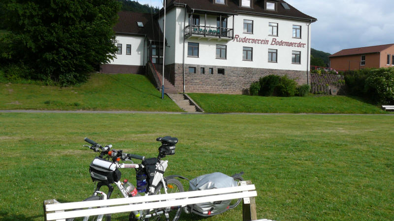 Um 19:00 Uhr komme ich auf dem Campingplatz Stolzenau an. Dort gefiel es mir recht gut. Hier gibt es Sitzgelegenheiten, die überdacht sind. Wäscheleinen unter dem Dach sind auch praktisch. Zwei Pärchen mit Fahrräder waren dort zum übernachten. Die einen hatten Pech, da an einem Fahrrad die Felge gebrochen war. Ein Reparatur war nicht möglich. Der Campingplatzbetreiber ist am nächsten Morgen mit den Beiden nach Nienburg gefahren. Sonst hätten sie ihre Urlaubsreise nicht fortsetzen können. Die anderen Beiden haben mich zu einem Bier eingeladen. Wir fanden uns gleich sympathisch.