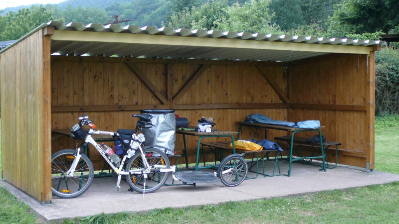 Duschmarken - welch ein Luxus! Der Grillunterstand bietet sich an, um die