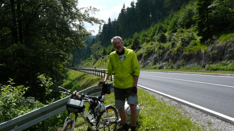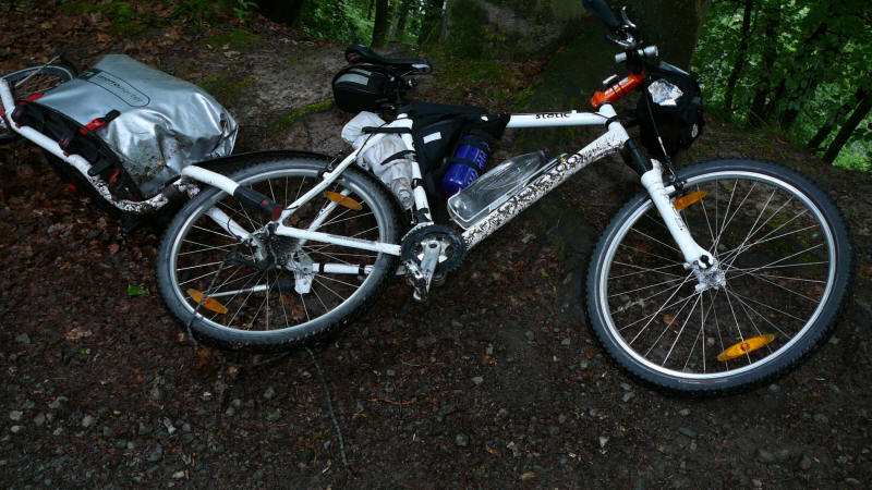 starke Steigung, bis die Kette riss. Nun war ich mitten im Wald. Ca. 15km vor dem Ziel des