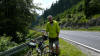 Moutainbike fahrer an den mit 12% ausgeschilderten Steigungen. Bei