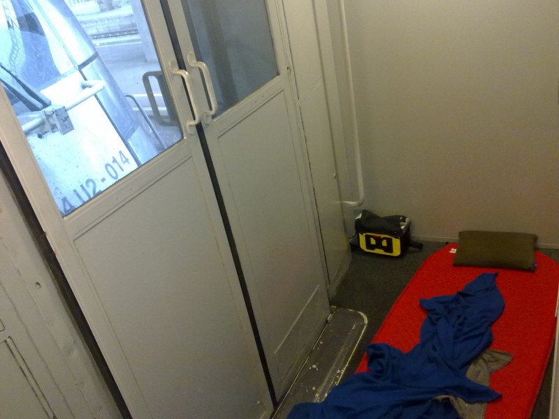 durch die Lok. Immer noch besser als im Sitz. Schlafen konnte ich
