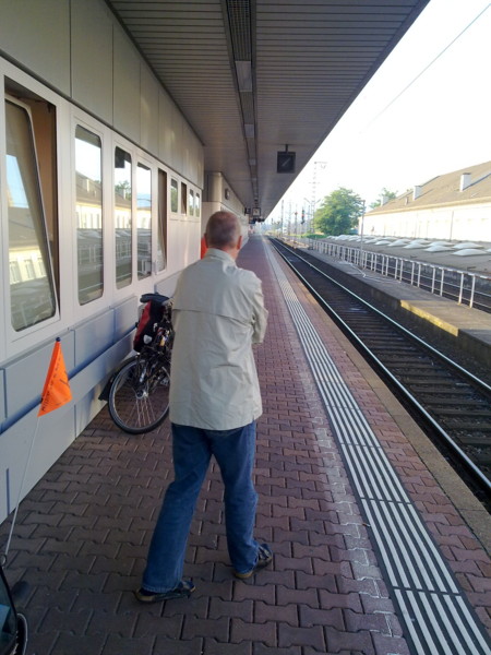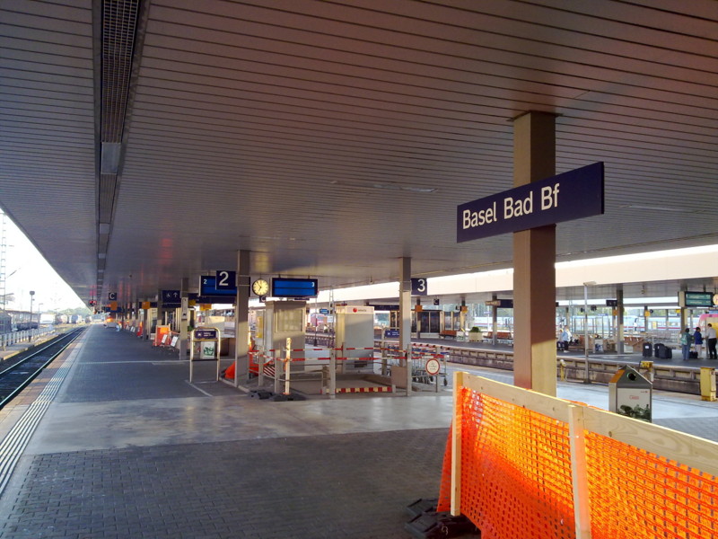 trotzdem nicht richtig. Um 5:30 Uhr habe ich alles wieder zusammen gepackt. Rainer war auch schon wach. Fast pünktlich um 6:44 Uhr stiegen wir in Basel-Bad aus. |