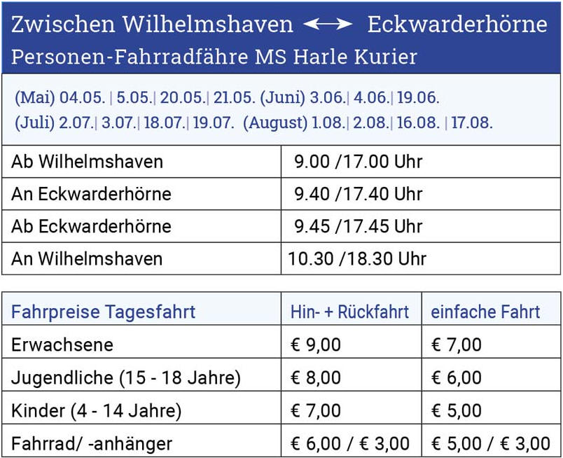 Die Fahrrad-Fähre MS „Harle Kurier“ zwischen Wilhelmshaven und Eckwarderhörne