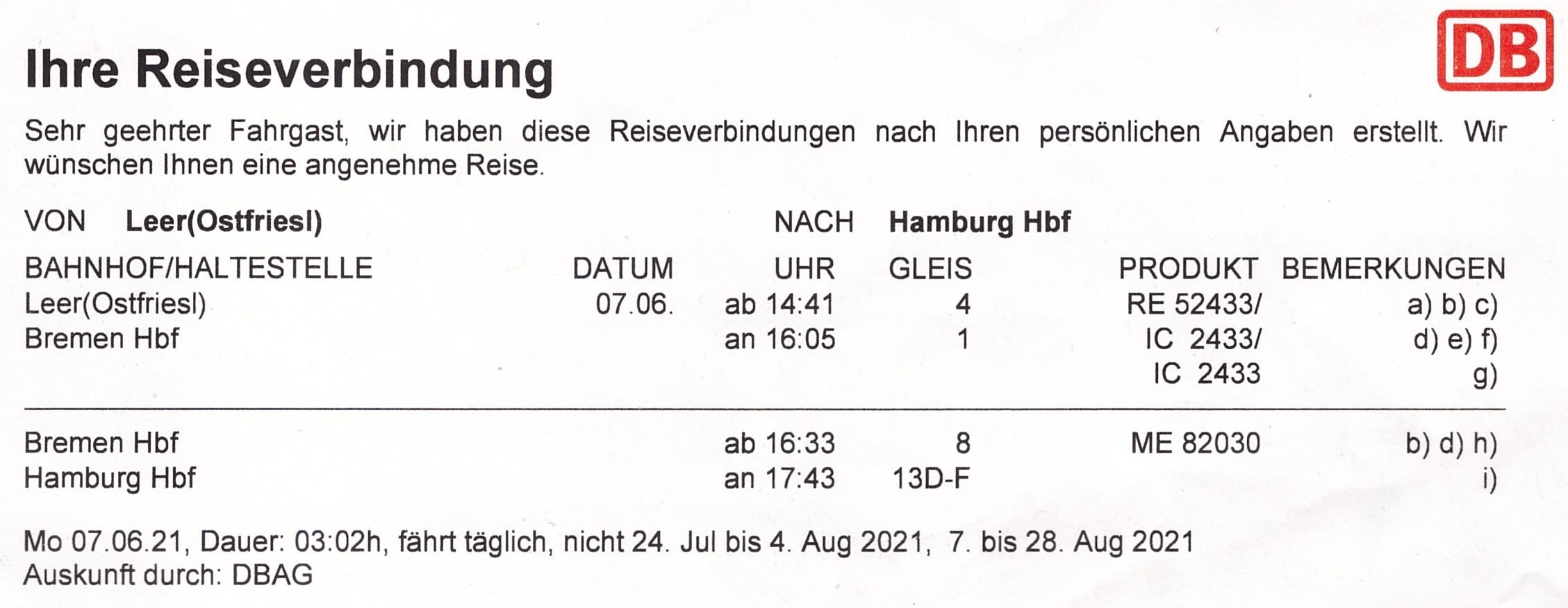 nach Leer (Bahnhof) - 52km