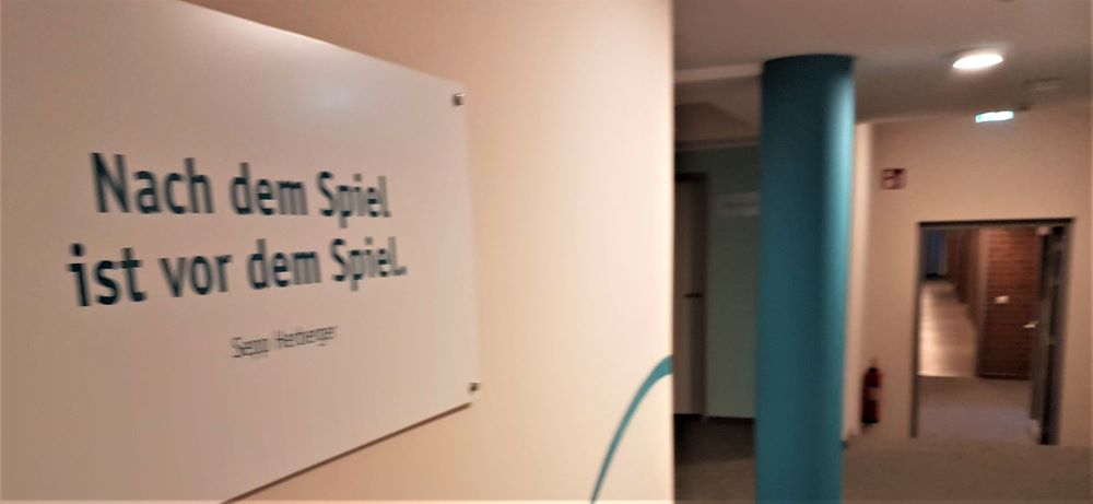 Sprüche dürfen in einer Fußball-Ausbildungsstätte natürlich nicht fehlen.
