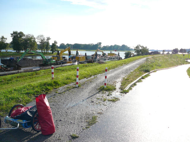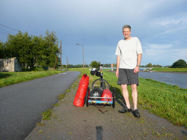1. Tag (So) Fahrt von Wittenberge nach HavelbergDie Fahrt von Wittenberge nach Havelberg war wunderschön, aber erst nach dem Regenschauer, der mich voll erwischt hat – nur meine Regensachen und die Schuhe waren nass – unter einer Kastanie hatte ich schon vorher alle Sachen, die nicht unbedingt dem Regen ausgesetzt sein müssen, ausgezogen – das macht die Erfahrung, denn unterwegs bekommt man es schlecht wieder trocken – unbedingt blaue Säcke für die Iso-matte am Montag kaufen – etwa 10km vor Havelberg hat die Elbe einige Nebenflüsse – an denen ging es auf dem Deich entlang – die Sonne schien – blauer Himmel – wunderschöne Landschaft – das war die Entschädigung für die Strapazen bis hierher. |