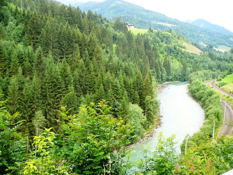 Vom Platz geht es weiter die Möll hinauf zum Bahntunnel, der sich