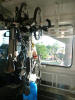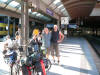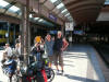 Mittags Die Abfahrt verzögerte sich etwas, aber das störte uns nicht. Wir hatten den ganzen Tag Zeit.Die Zugreise war, wie schon die Anreise, besser als im Nachtzug. Es waren auch wieder Radfahrer im Zug. Das Abteil für die Räder ist wieder voll geworden. Bei ca. der Hälfte der Strecke wurde es im Großraumwaggon unangenehm warm. Die Klimaanlage war ausgefallen. Die Fenster konnten nicht geöffnet werden. Mutter und Tochter, die auch mit dem Rad unterwegs waren, sprachen mich an, ob ich gegen die Wärme etwas tun könnte. Erst dachte ich, dass ich den Beiden Luft zu fächeln sollte. Ich sprach die Zugbegleiterin an. Sie wollte den Kollegen bitten, mal nachzuschauen. Kurz danach war der Fehler behoben. Die beiden Frauen meinten , dass ich mich wohl gut mit Technik auskenne - das bestätigte ich. Warum soll man das Lob nicht einfach mal genießen... Leider fiel die Klimaanlage noch ein zweites Mal aus - na ja es gab noch anderes Waggons, in denen man die Fenster öffnen konnte. |