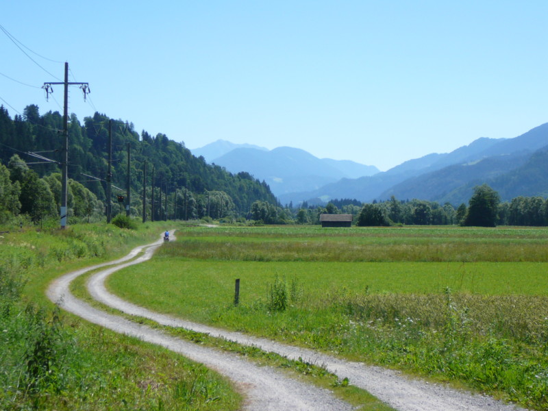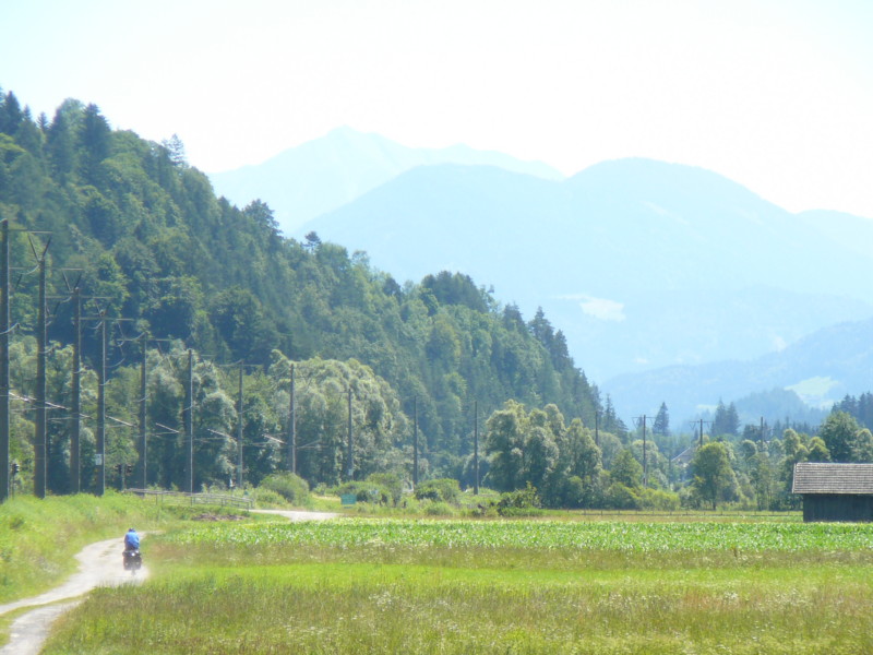 Morgens Sonne und leichter Wind Der Drauradweg ist kurz vor Villach ziemlich