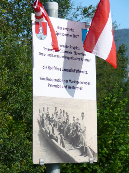 Abends Bei "Lansach" kann man mit einer handbetriebenen "Rollfähre" die