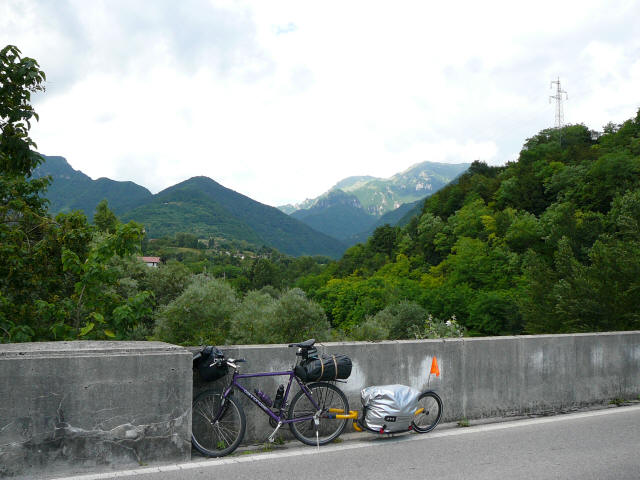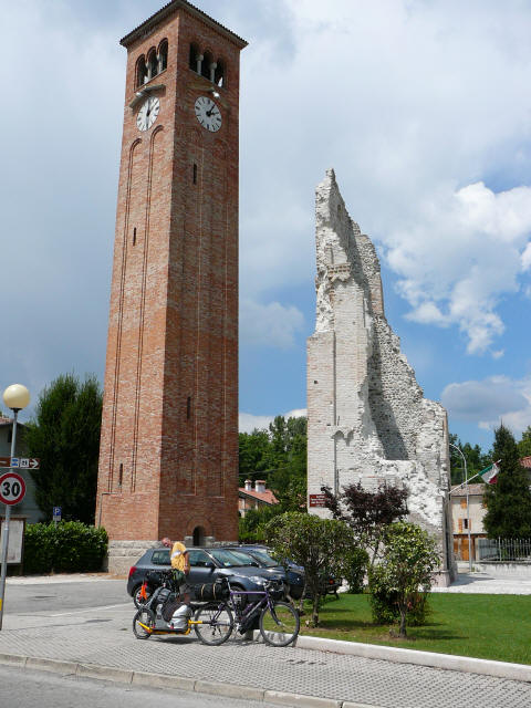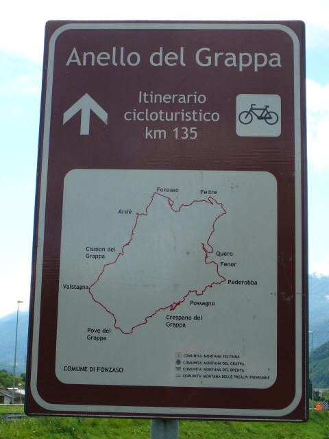 | Kein Camping auf 140km von Feltre nach Treviso | Nach Quero rauf ist es noch bergig - dann kommen wir ins Flachland |