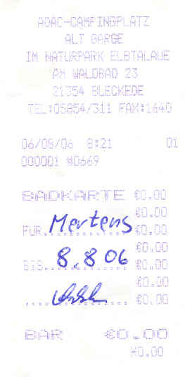 Mo 7.8.2006 | 1. Tag | Abfahrt 10:45 Uhr Prisdorf - Ankunft 16:00 Uhr
