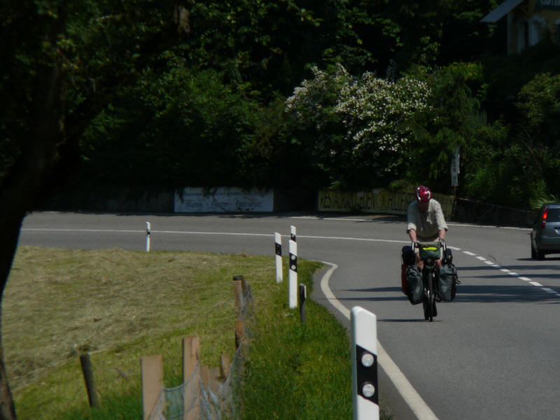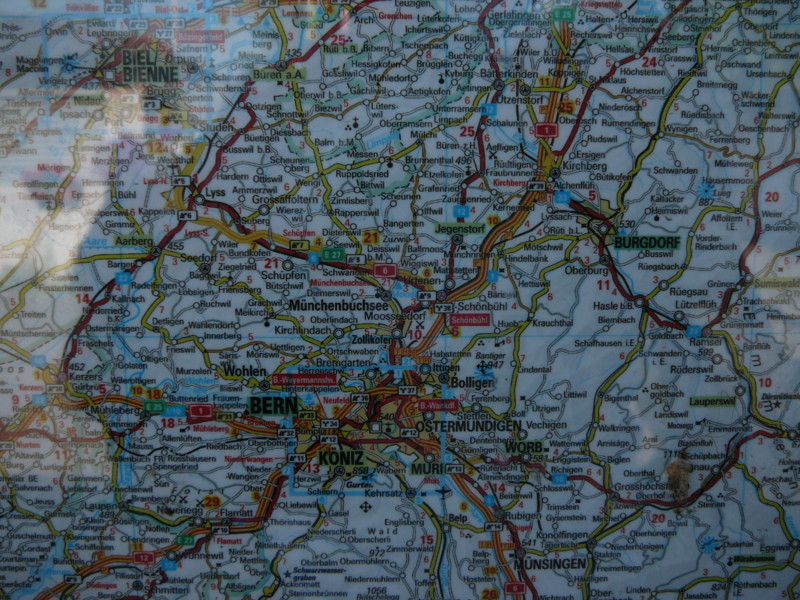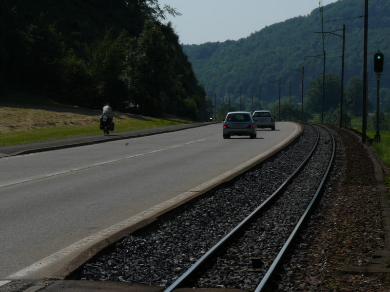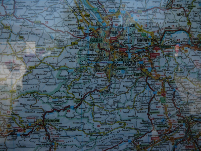 Mittags Verfahren bei "Bubendorf", nähe Liestal. Ein nettes Ehepaar half uns und holte sogar Karten aus dem Haus. Wir hätten gar nicht erst den Berg nach "Ramlinsburg" hinauffahren sollen - unten an der Straße hatten wir ein Schild [54] übersehnen, was nach rechts zeigte. Es ging auf einem Veloweg parallel zur Straße weiter. Ein Test für starke Anstiege, die noch folgen sollten... Schaut mal auf das Video hier rechts vom Text. Mit rechter Maustaste auf das Video, dann auf Abspielen klicken. |