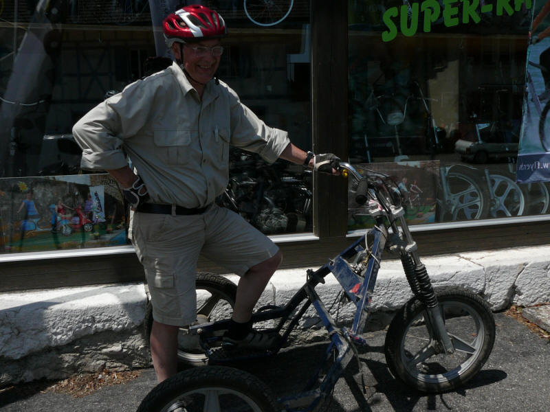 Abends Einkaufen mussten wir noch, da das ja Sonntag hier auch nicht geht... Rainer war physisch am Ende. Er legte sich auf dem Campingplatz, so wie er von Rad gestiegen war, auf den Rasen. Es war einfach zu warm! |