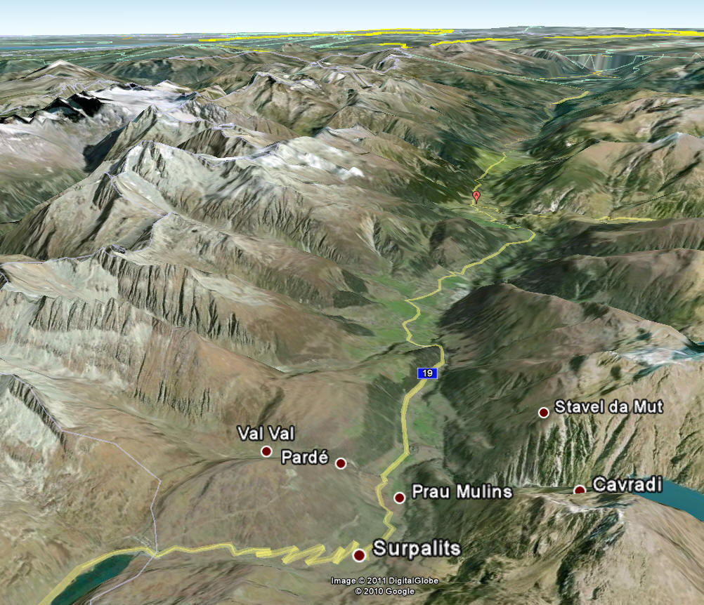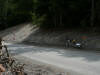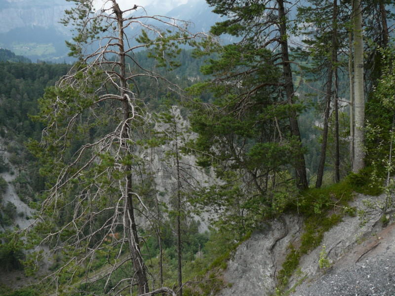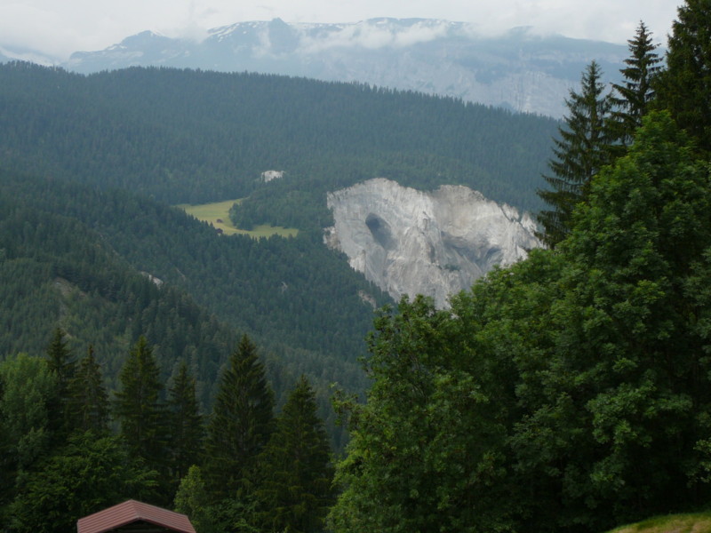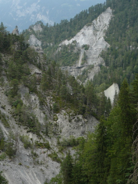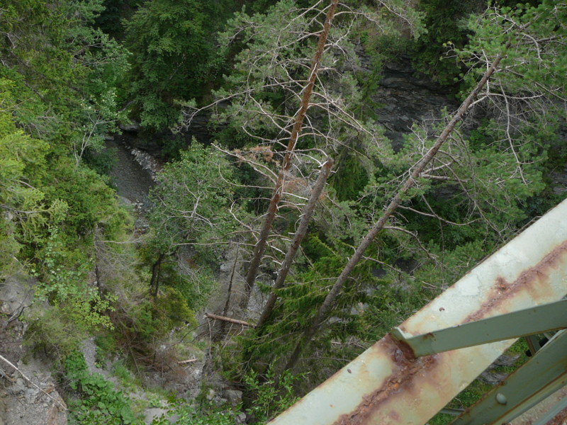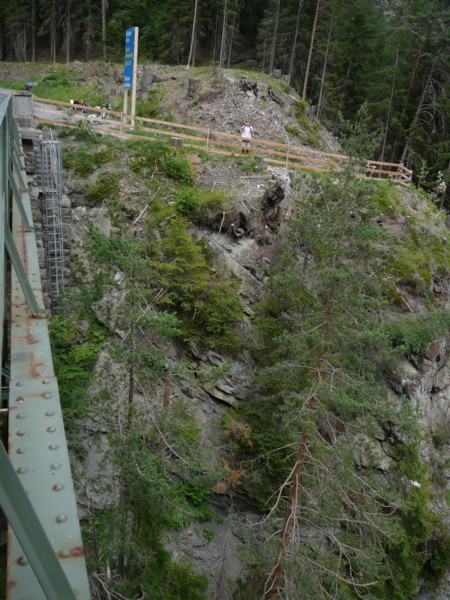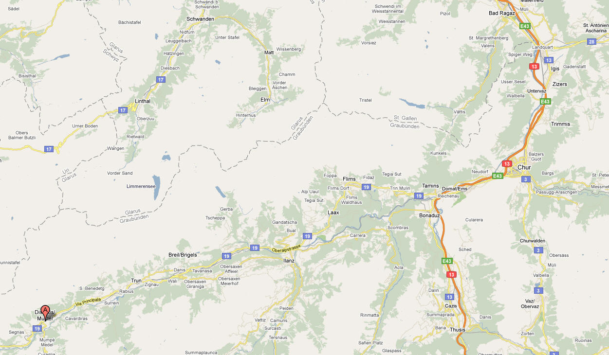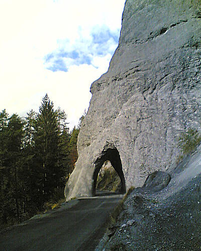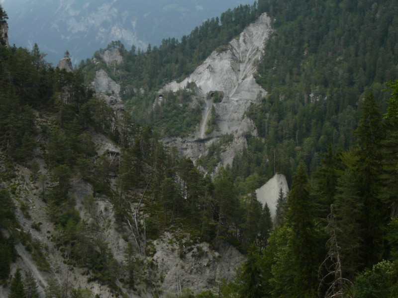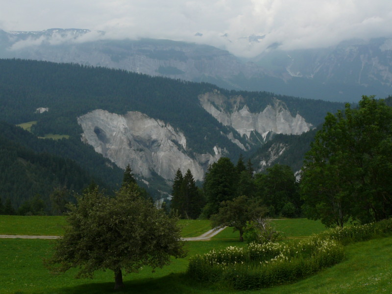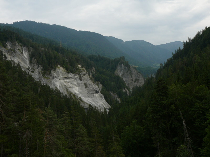 Mittags Es folgte eine wilde Fahrt hoch und herunter links und rechts - ich verlor meine Orientierung. Das machte überhaupt nichts, denn es gab nur diese eine Straße zur Rheinschlucht. Ein berauschender Ausblick und die gefährlichste Straße der ganzen Tour! Hier ist der Weg in den Fels gehauen worden. Es gibt ein paar Ausweichstellen, sonst passen noch nicht einmal zwei PKW's aneinander vorbei.