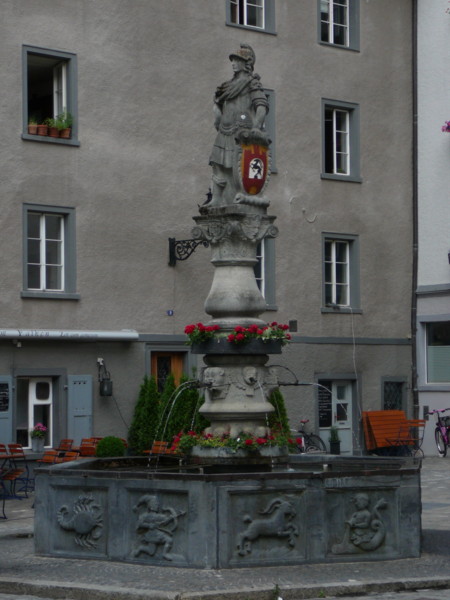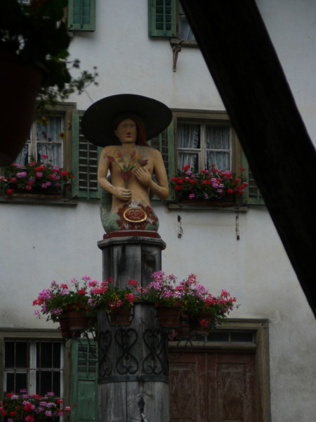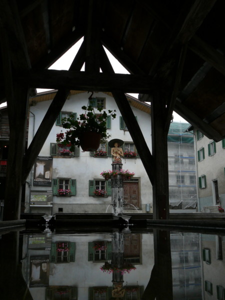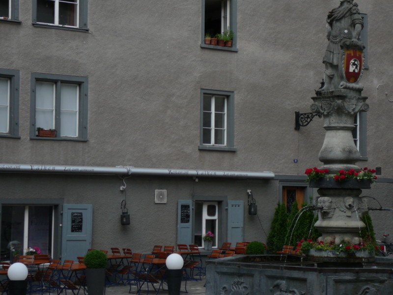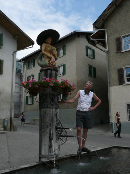 Vormittags Dann ging es wieder ein paar hundert Meter hoch. Dort ist der älteste und größte Holzbrunnen der Schweiz. Dieser wird alle 30 Jahre vollständig erneuert. Einen Kaffee und ein Eis gab auf der Terasse eine Gastwirtschaft nebenan.