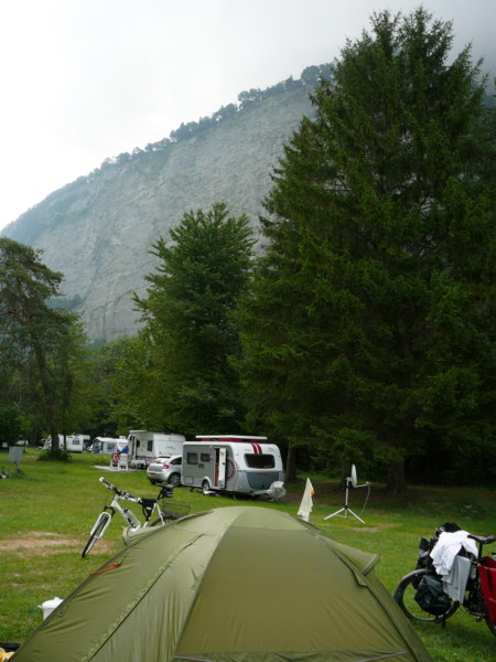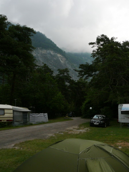 Abends In "Prättigau" ist wieder ein TCS-Camping. Ich koche gerade Nudeln bei den Aufenthaltsplätzen. Hier ist Selbstbedienung am Automaten angesagt. Die Rezeption hat ab 19:00 geschlossen. Sonst gibt es hier keine Einkaufsmöglichkeit. |
