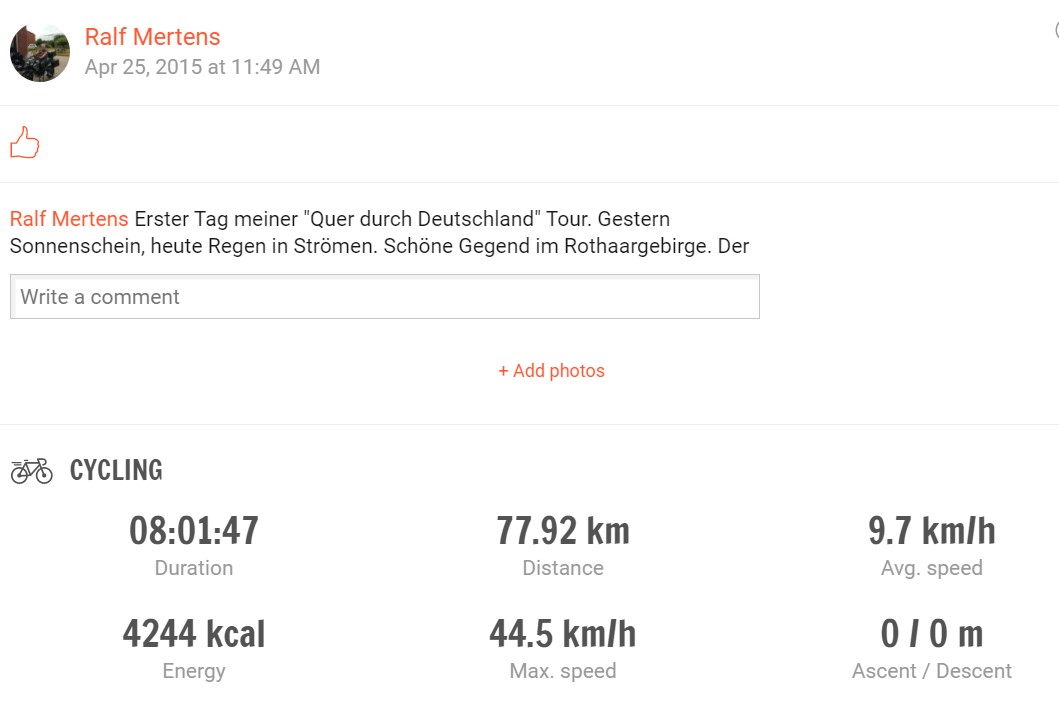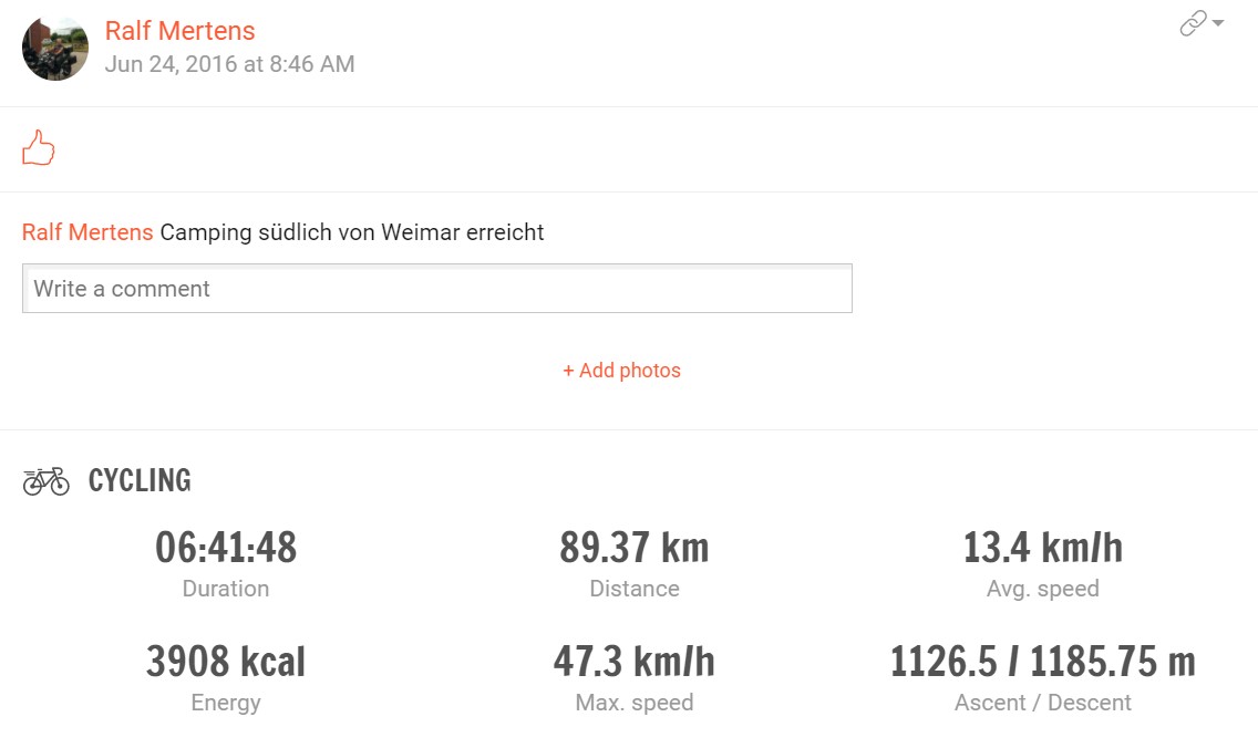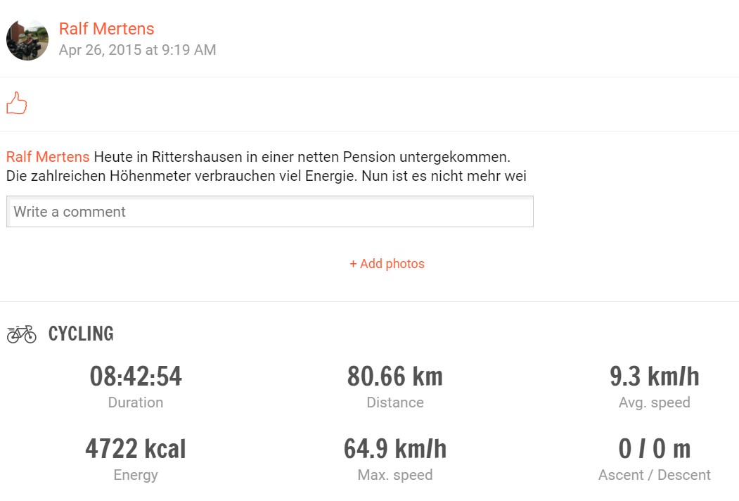 Heute in Rittershausen in einer netten Pension untergekommen. Die zahlreichen Höhenmeter verbrauchen viel Energie. Nun ist es nicht mehr weit.