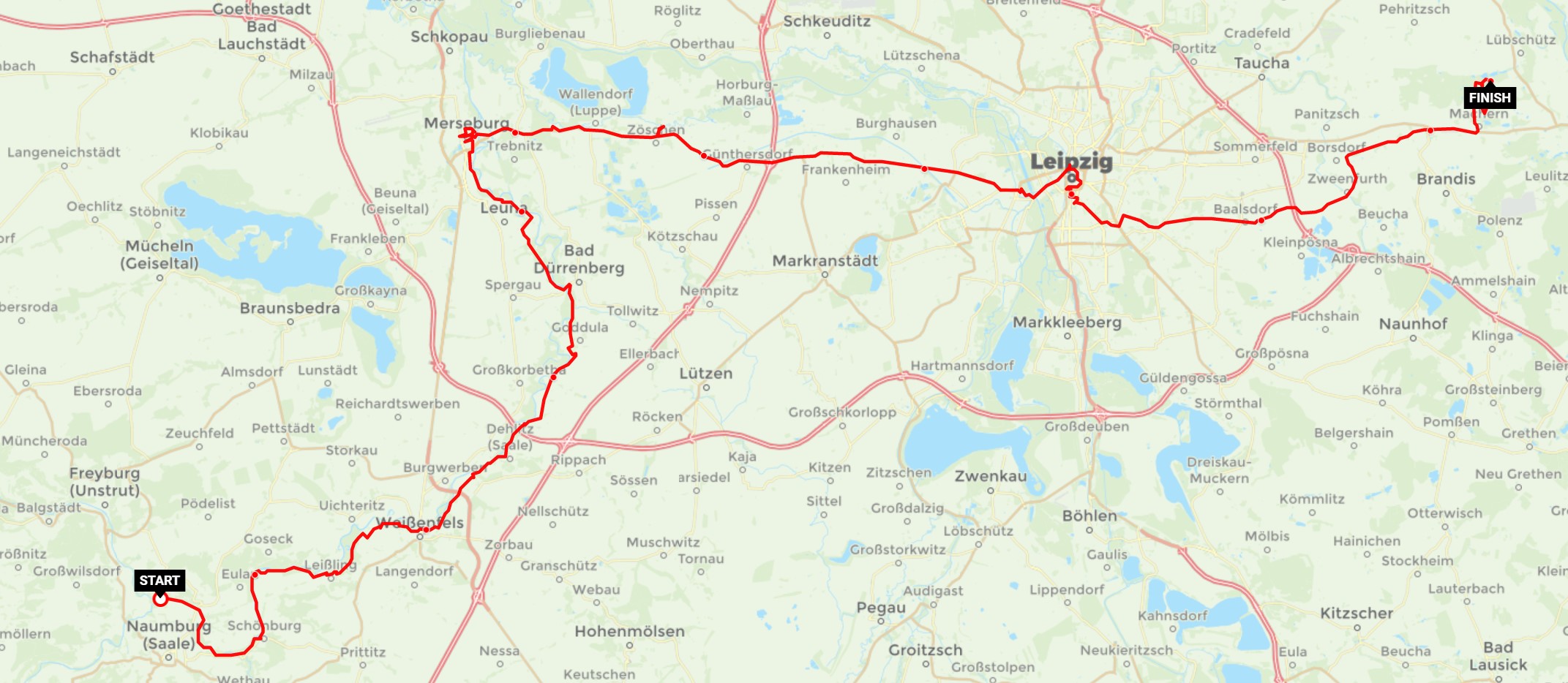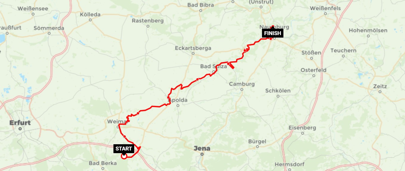 Köln - Siegen - Marburg - Bad Hersfeld - Heringen - Eisenach - Gotha - Erfurt - Weimar - Naumburg - Leipzig - Riesa